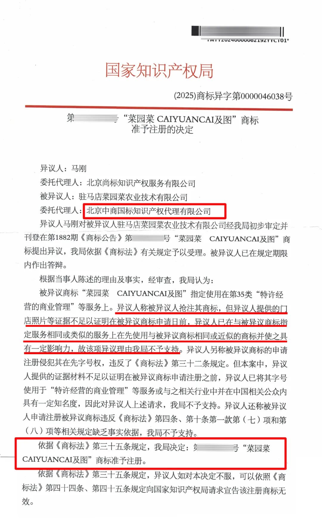 恭喜“菜园菜”商标异议答辩成功——侵犯字号权
